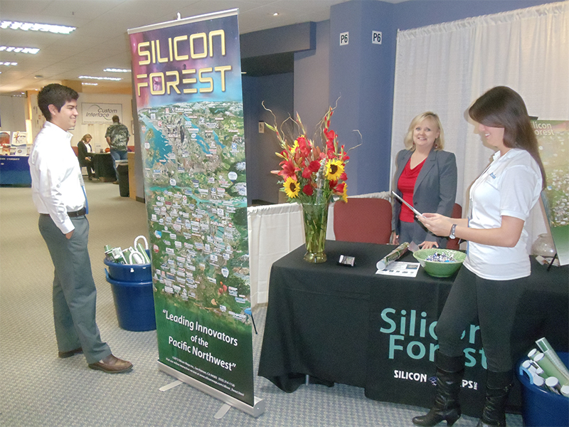 The iconic Silicon Forest Map & Calendar is printed on thousands of posters and promotional pieces (mouse pads, greeting cards, postcards) annually and distributed to key industry professionals globally, at all levels, through major industry events, direct mail, and by participating companies. The compelling industry map is proudly displayed in executive offices, conference rooms, reception areas, work areas and considered an industry favorite for corporate gifts and trade events. Each map is viewed many times throughout the year!